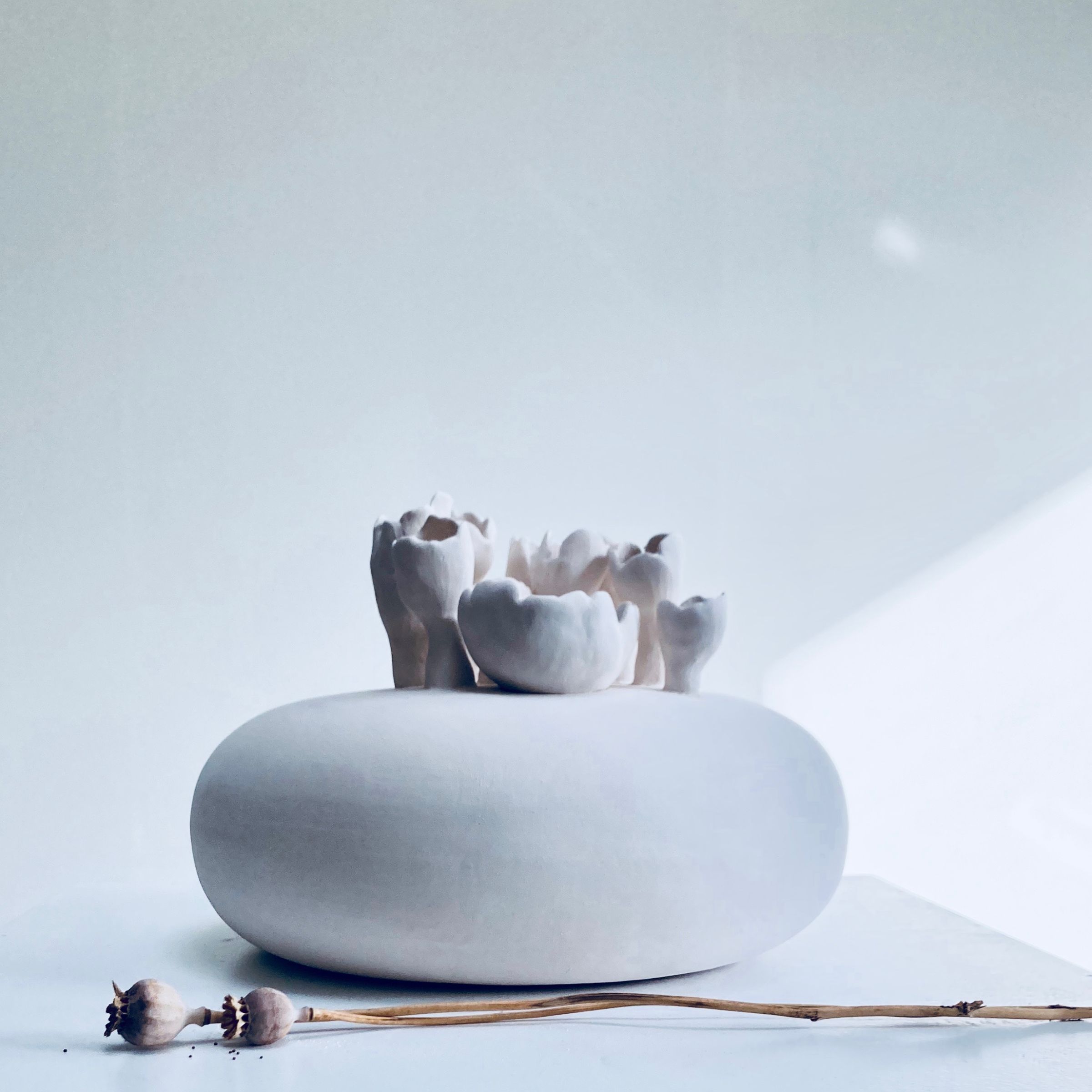 Expositieadres: Johanneskerk Weidum Beelden, objecten en urnen van verschillende soorten klei. Thema: 'verstilling' Passend in de serene omgeving van de recent gerestaureerde Johanneskerk te Weidum.