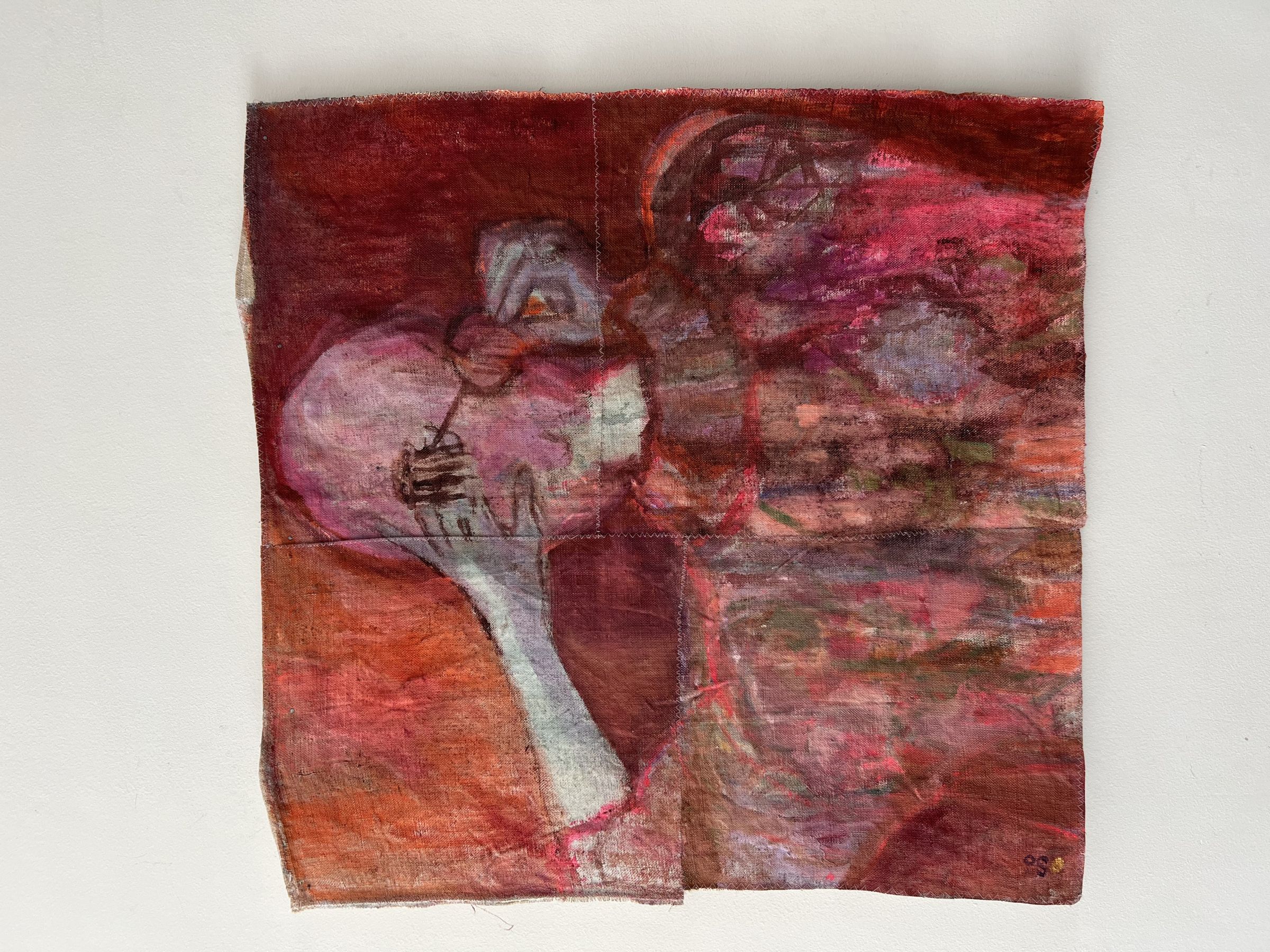 Haar schilderijen zijn niet alleen een lust voor het oog maar ademen ook een enorme liefde voor stoffen uit door het gebruik van diverse materialen. Dit kan antiek linnen zijn maar ook een stof die zij eerst zelf bewerkt heeft.