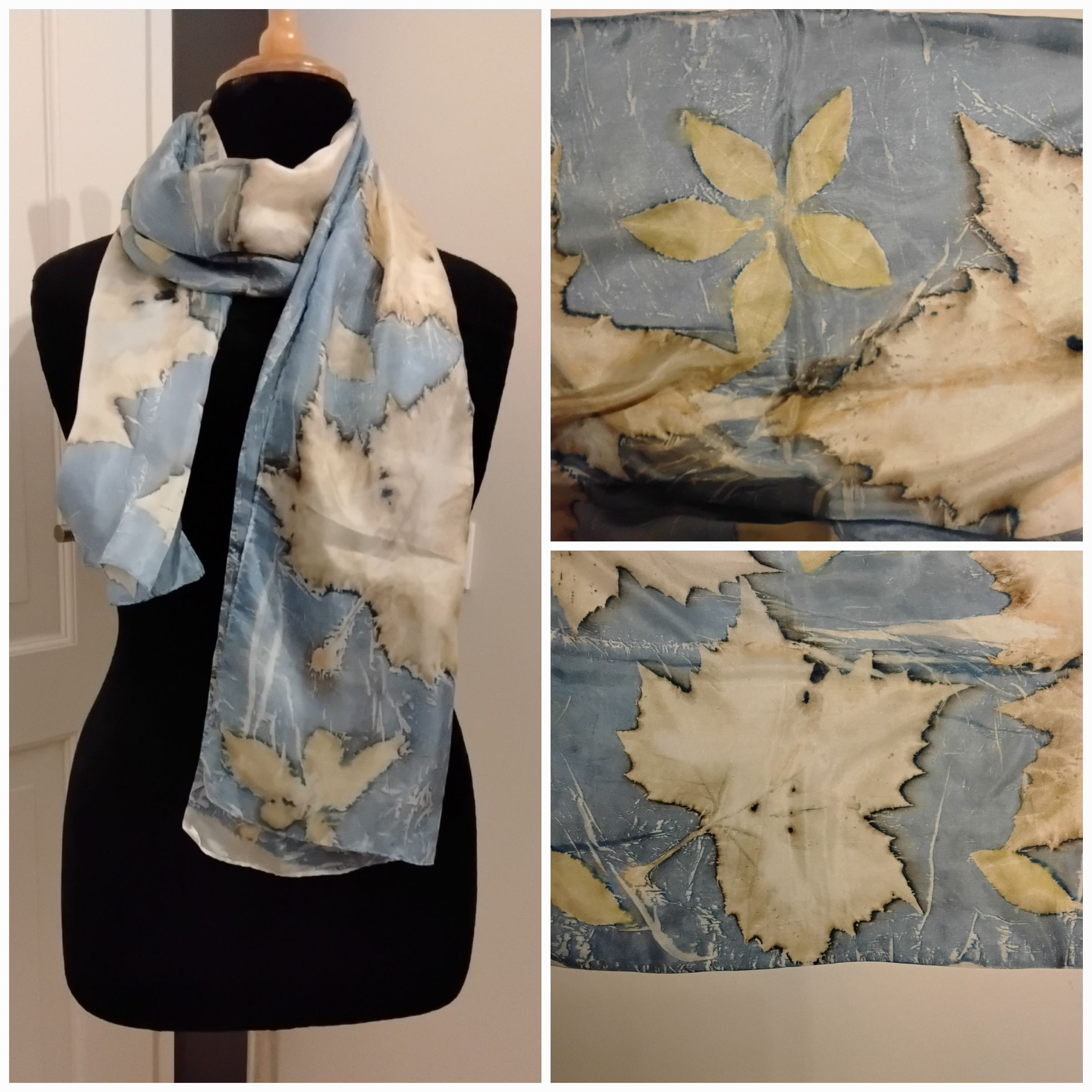 Wol en zijde. Lontwol en zijde zijn heel veelzijdige producten waarmee je kunt "boetseren en schilderen". Zo maak ik sieraden, sjaals, hoeden en schilderijen. De zijde sjaal zijn ECO geverfd met o.a. bladeren.