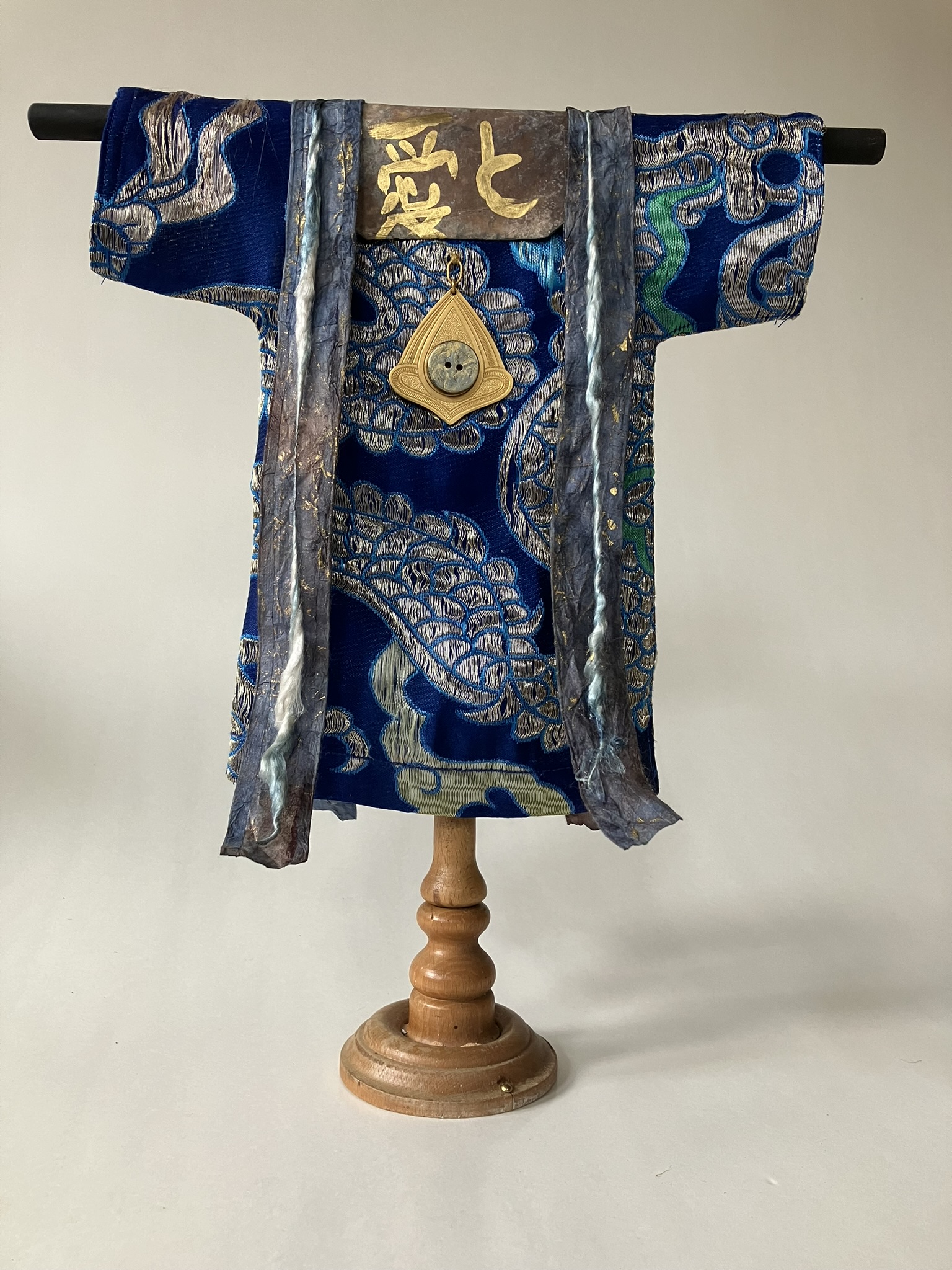 In het kader van ons thema Japan heb ik met 3 mede exposanten kimono's gemaakt van stof, met lood, versierselen van kant, papier etc. Er komt ook een gezamenlijke installatie met 1000 papieren kraanvogels , foto's en films met kraanvogels en kleine papieren 2 d kimono's.